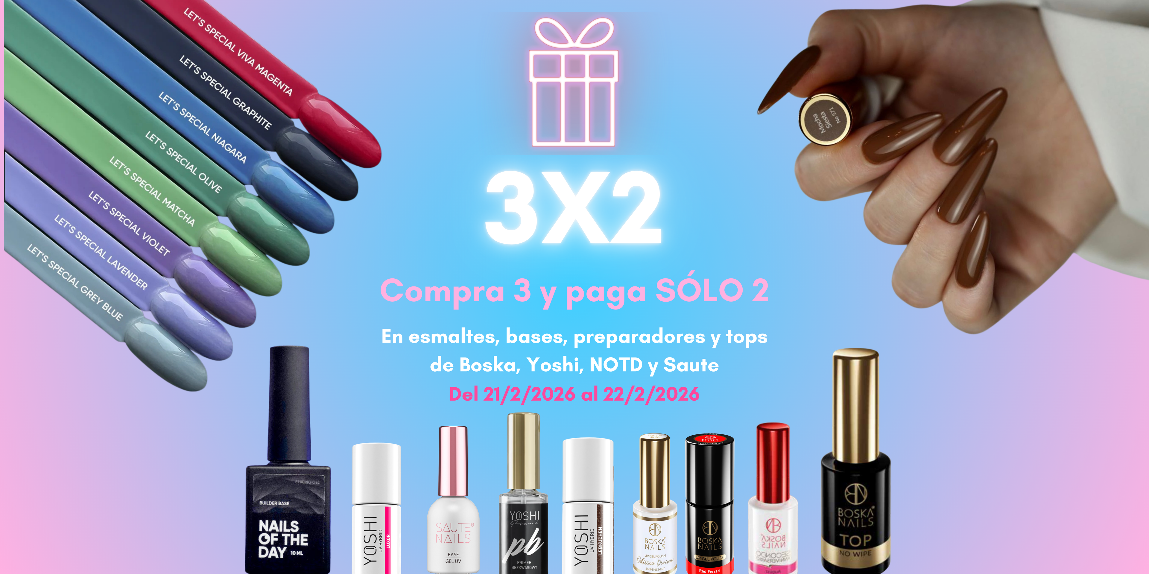 Somos una tienda multimarca donde buscamos facilitaros productos de alta calidad como: Staleks PRO, PNB, Saute Nails, Nails by Larita, Joia VEGAN, Nails Of The Day, DNKa, F.O.X, Inveray, MakeAR, YOSHI, Boska Nails, TakiDa y ÜLKA.